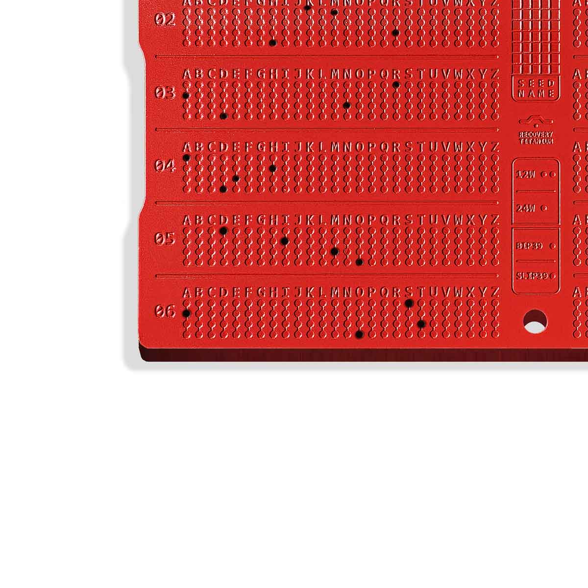 - Dual-Sided Storage - Space for up to 24 seed words (12 per side) in a slim and lightweight card.