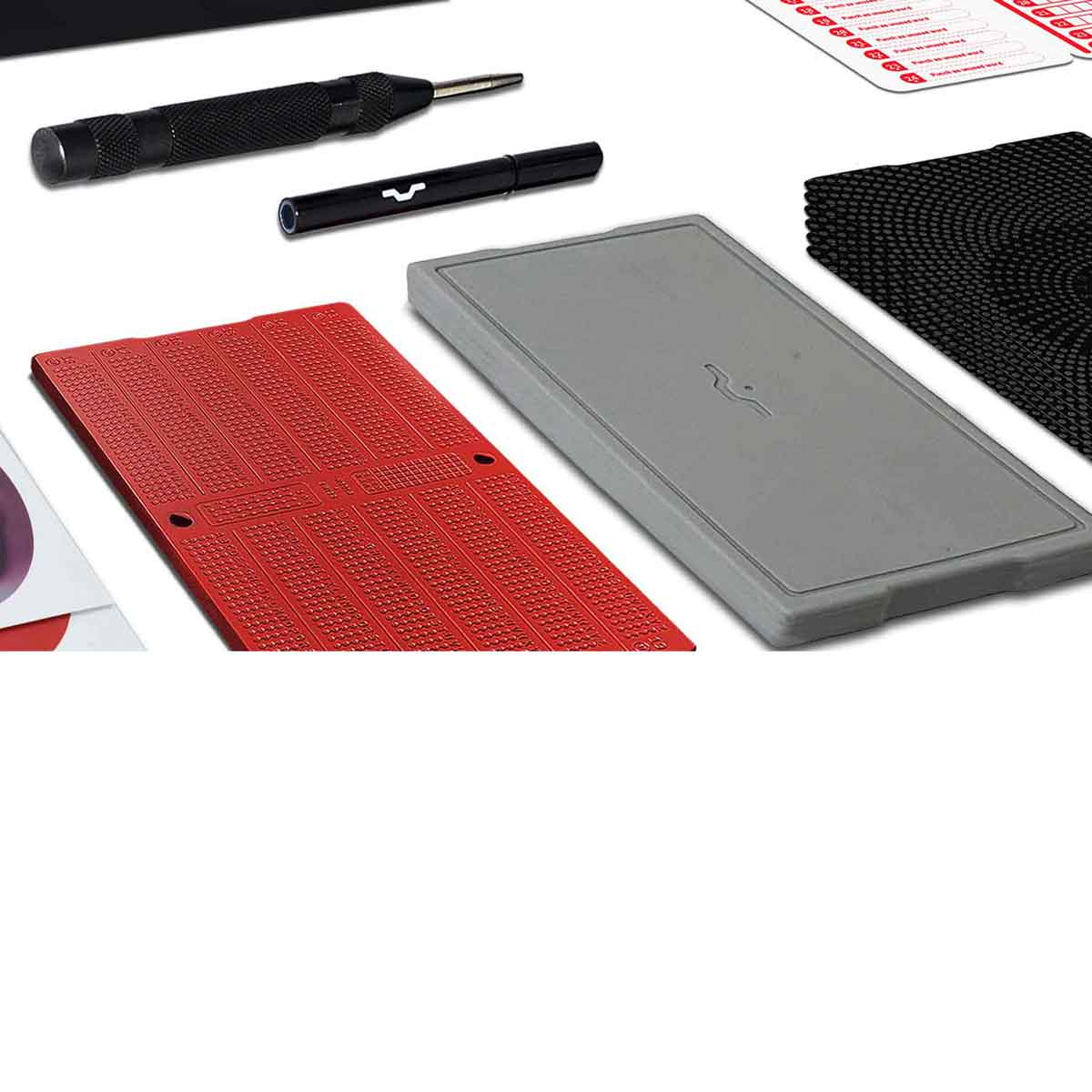 Use the included automatic center punch to permanently engrave your Hodlr Recovery Titanium. The sound-absorbing, grip-secured silicone mat ensures a comfortable experience.