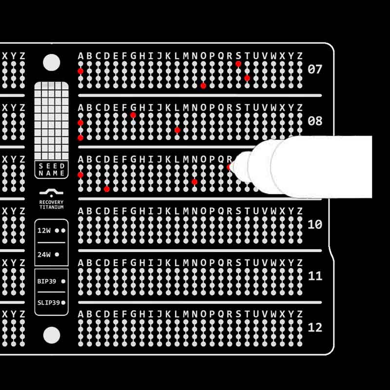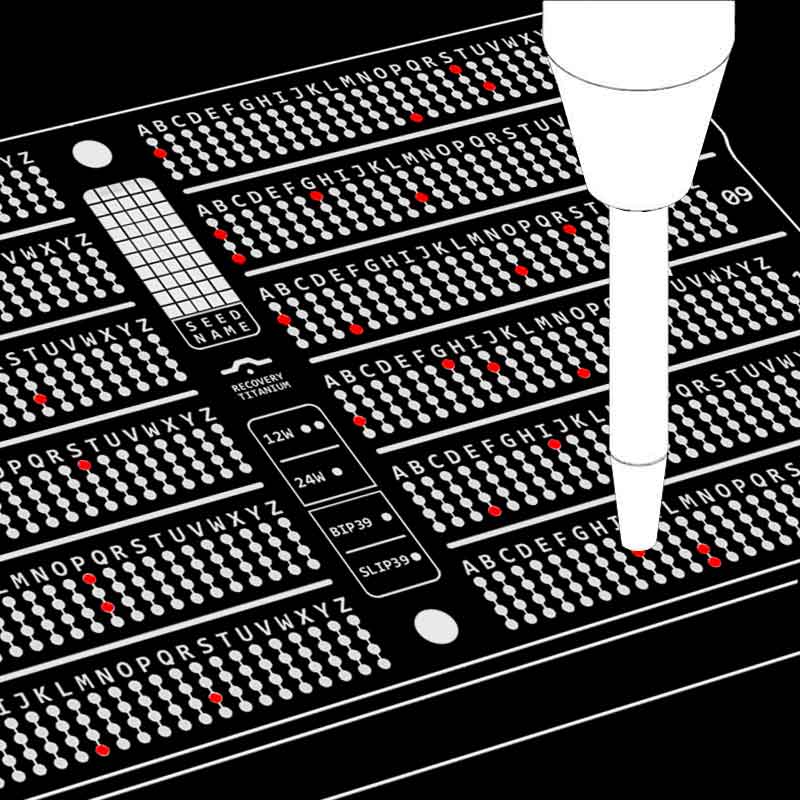 Each seed word is identified by its first four letters only. Pre-mark these letters on the Hodlr Recovery Titanium with the included pen to avoid mistakes.