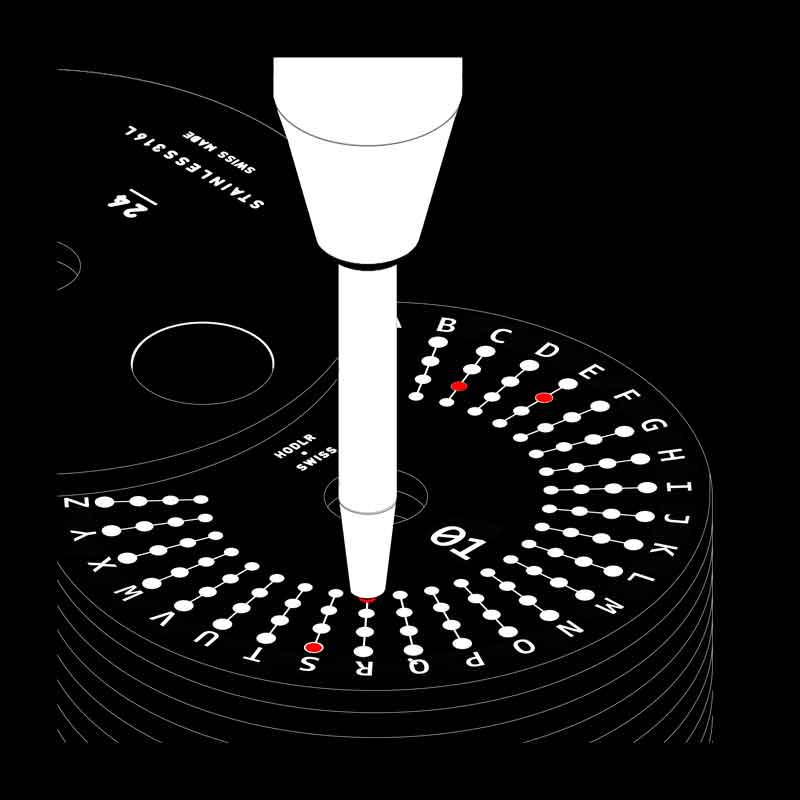 Hodlr Shield 24 is built for permanent security—featuring precision-etched titanium disks in a solid monobloc steel shell.